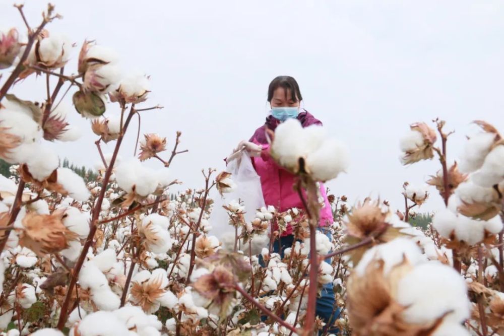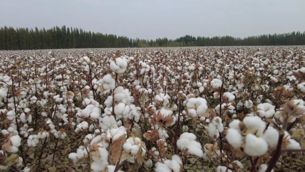 雪白的棉花开满枝头。